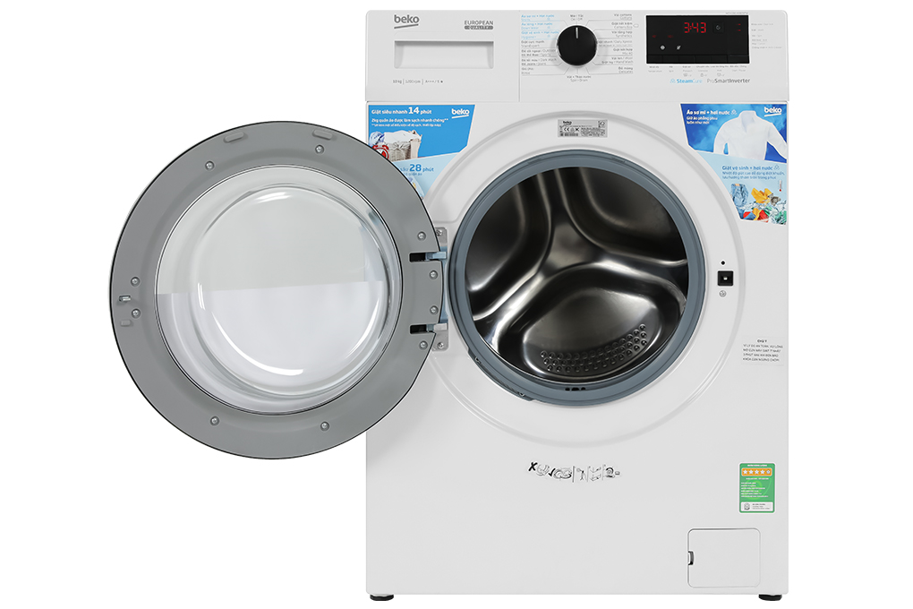 - Chiếc máy giặt Beko này phù hợp cho gia đình từ 5 - 7 người sử dụng nhờ khả năng đáp ứng khối lượng giặt quần áo 10 kg.