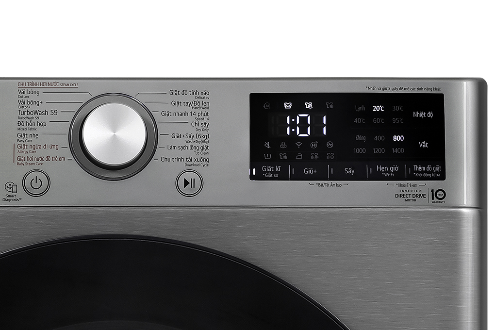 Máy giặt LG này được tích hợp chức năng sấy quần áo, khối lượng giặt tối đa là 10 kg và sấy 6 kg đáp ứng nhu cầu của gia đình có 5 – 7 người hoặc gia đình ít người với nhu cầu giặt lượng lớn quần áo thường xuyên trong một lần giặt.