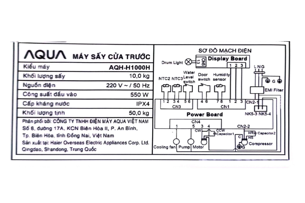 - Aqua AQH-H1000H.PS là loại máy sấy bơm nhiệt, sử dụng gas để tạo ra luồng khí nóng và thổi vào lòng sấy. Hơi nước có trong quần áo nhờ hơi nóng sẽ được ngưng tụ và thoát ra ngoài ở hộp chứa phía trên giúp cho quần áo nhanh khô hơn và đảm bảo an toàn cho các gia đình có trẻ nhỏ hay vật nuôi trong nhà.