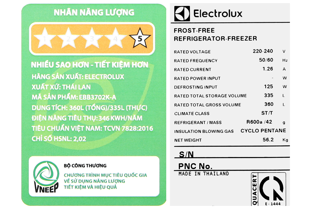 - Mẫu tủ lạnh Electrolux này được thiết kế 335 lít, có thể đáp ứng nhu cầu bảo quản thực phẩm cho số lượng từ 3 - 4 người.