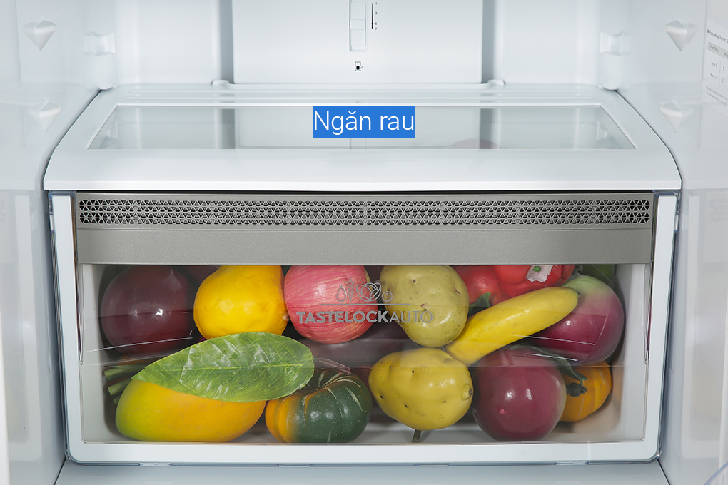 - Ngăn rau củ quả kín: Có trang bị thêm lưới lọc tự động có thể điều chỉnh và kiểm soát được độ ẩm thích hợp, giúp cho các loại rau củ quả giữ được độ tươi ngon, tránh bị úng hoặc héo trong thời gian bảo quản.