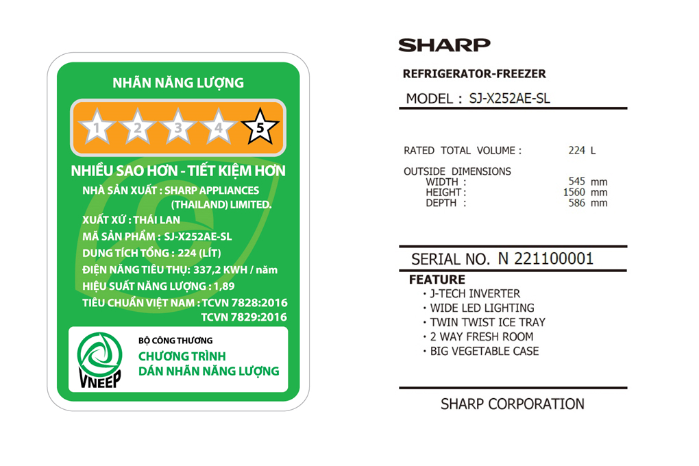 - Công nghệ J-Tech Inverter: thông qua việc điều chỉnh máy nén hoạt động luân chuyển từ các chế độ hoạt động cao và thấp thay cho việc chuyển hoạt động giữa chế độ mở và tắt giúp giảm lượng điện năng tiêu thụ cho tủ lạnh Sharp mà vẫn duy trì nhiệt độ làm lạnh tối ưu, đảm bảo thiết bị vận hành êm ái, hạn chế độ ồn.